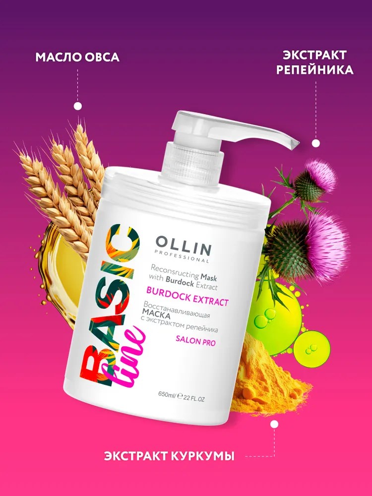 OLLIN - Маска восстанавливающая с экстрактом репейника BASIC LINE, 650 мл